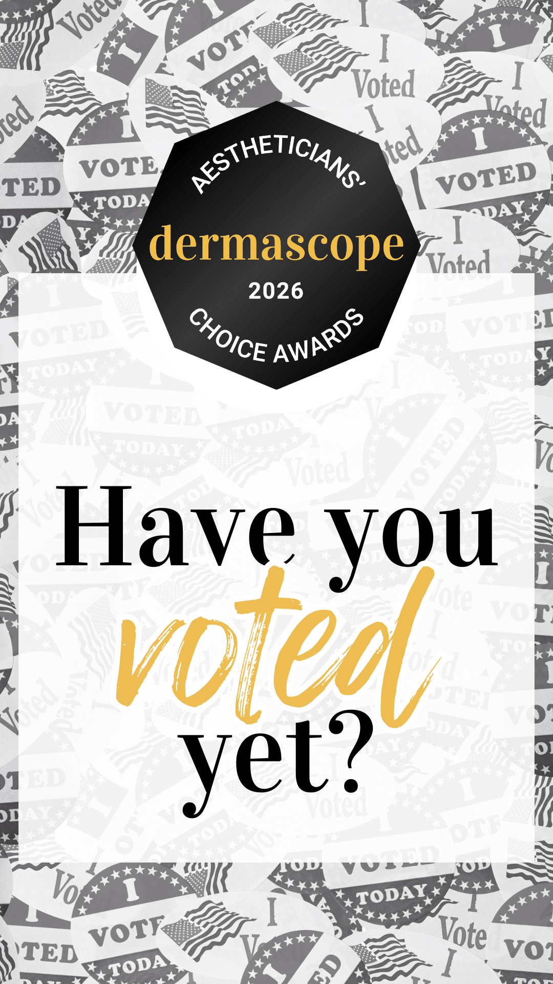 Use the marketing materials below to boost your exposure in our 2026 Aestheticians’ Choice Awards! Use these images on your social media pages, websites, e-mail signatures, and so forth.