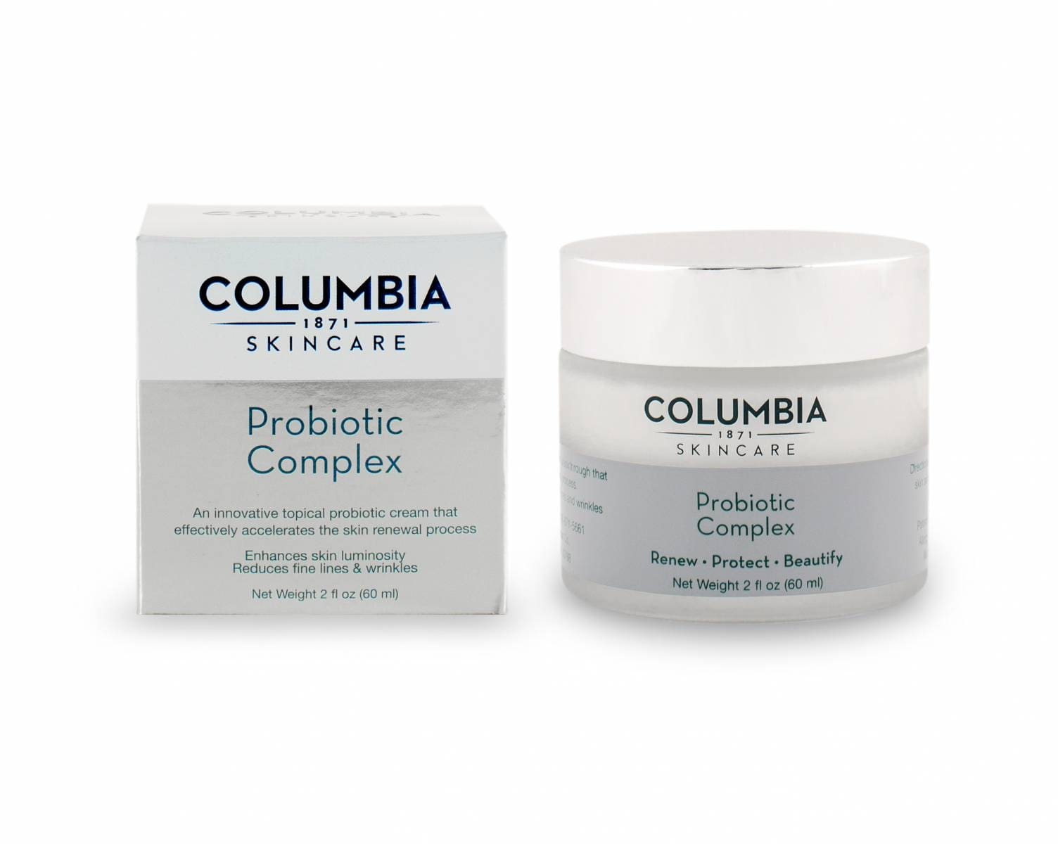 USAGE DIRECTIONS: Warm a small amount in the palm of your hand and apply to face and neck. The texture of the complex is transforming, and is suitable for dry or oily skin. Use daily (AM & PM) for an all-over treatment for all skin types including skin conditions such as rosacea, acne, eczema and dermatitis. Can be used alone or with the Columbia Probiotic Concentrate as a complete treatment protocol.