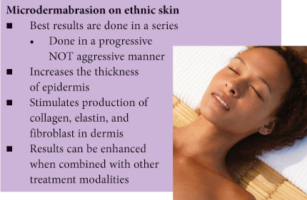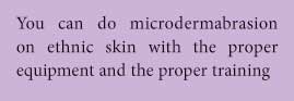 Historically, the ability to perform microdermabrasion treatments on ethnic skin was limited due to lack of training and lack of manufacturing and engineering of early models. As the depth of the treatment increased, so also did the increase in trauma, and correlating blood flow to the area of treatment. Skin responds to trauma much like all other human tissue, with an inflammatory response. Ethnic skin can sometimes respond to this type of treatment by increasing the stimulation of melanocytes, primarily due to the inflammatory response in the tissue. The key to exfoliatiation described in this article is to proceed with moderate increases over the course of the treatment protocol. Although hypopigmentation can occur, hyperpigmentation is most common.