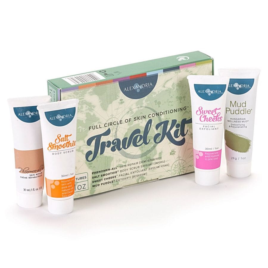 We’ve taken all the goodness of our Full Circle of Skin Conditioning program and created an all-in-one travel sized kit to take with you wherever you go! The Full Circle of Skin Conditioning™ Travel Kit includes 1oz tubes of Salt Smoothie®body scrub, Sweet Cheeks™ facial scrub, Mud Puddlewellness mask, and Phenomen-all™ skin repair cream.