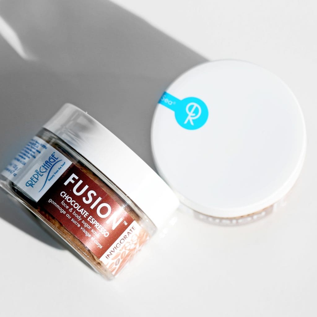 The Repêchage® FUSION™ Chocolate Espresso INVIGORATE Face & Body Sugar Scrub awakens your senses and your skin with Cocoa, Coffee, a Multi-Fruit AHA Complex, Madagascar Vanilla and Seaweed extracts to help exfoliate and reveal glowing skin.