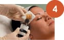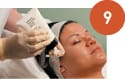 4. Sensi Peel® – Apply solution to a cotton pad, placing the neck of the bottle directly onto the pad, spacing it to give a sufficient working area to complete a full face treatment. Apply in layers according to the needs, goals, and individual sensitivity of the patient. Use the scale of one to 10 to gauge sensitivity. Fan skin to keep patient cool between layers. If the patient responds higher than a six, do not proceed with another layer. Do not exceed four layers.