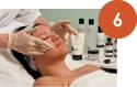 3. Pre-Peel Accelerator Mask – Apply liberally with a fan brush and massage into the area of treatment. Continue massaging until all product is absorbed — approximately three to five minutes. This will gently dissolve keratinization and allow for cell renewal. Remove completely with water.